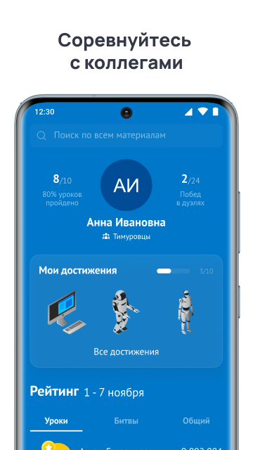The application will help you learn the basics of modern technology and "digitalization". Convenient training format, game tests, tournaments and "star" ratings among colleagues.