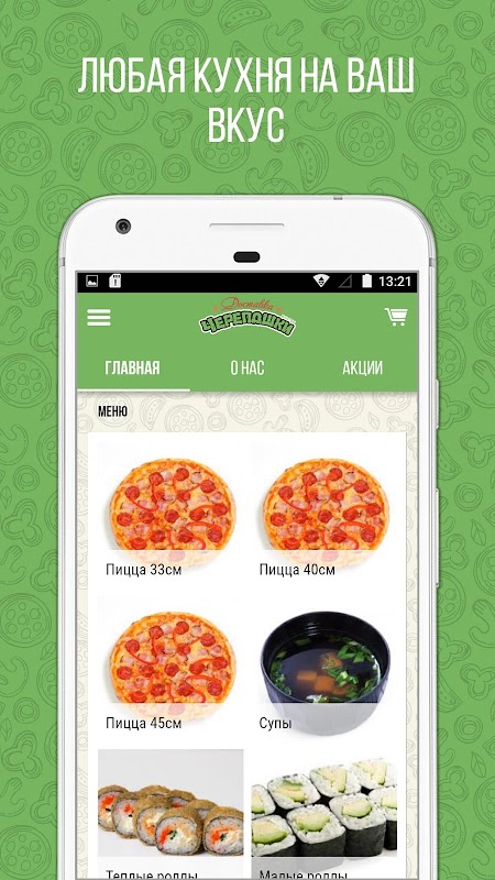 Через мобильное приложение "Черепашки ниндзя", , вы можете быстро заказать вкуснейшую пиццу на ваш вкус, свежие салаты, горячие закуски, бургеры, пасту и конечно же роллы.