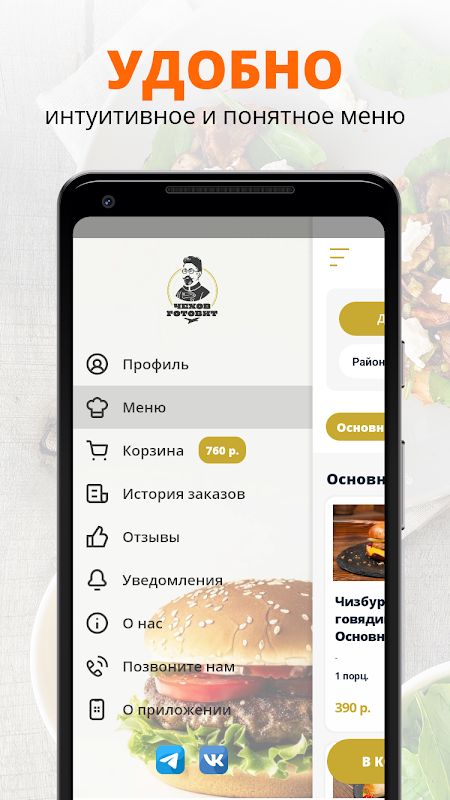 The Chekhov Cooks app is a convenient way to order food to your home or office.