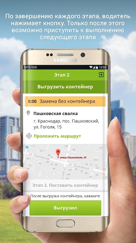 Приложение для водителей компании чистый город. Исполнение заявок на установку контейнеров для вывоза мусора