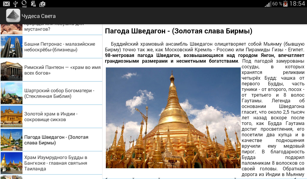 Annex "Wonders" presents the most outstanding monuments created mastery of human genius on 5 continents - Europe, Asia, Africa, North and South America.