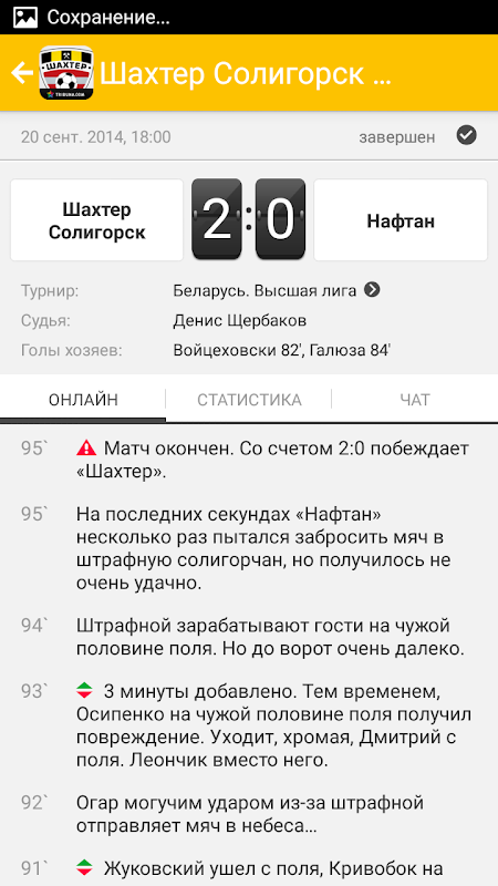 – Текстовые трансляции матчей, календарь и таблицу чемпионата Беларуси по футболу
