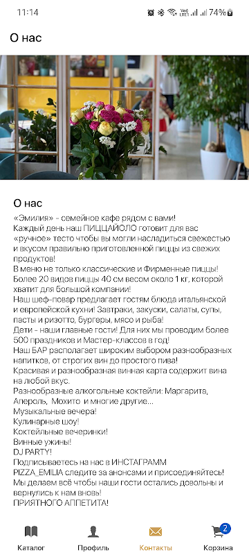 Через наше приложение можно заказать не только доставку, но и сделать предзаказ в кафе. Мы свяжемся с Вами и уточним детали.