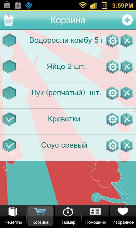 Так же в программе есть все необходимое, что бы помочь вам не только правильно приготовить блюда, но и купить необходимые ингредиенты, а так же подобрать рецепты по имеющимся у вас продуктам.