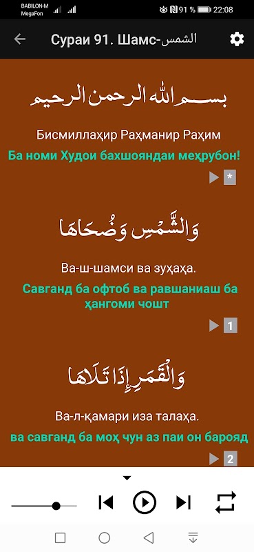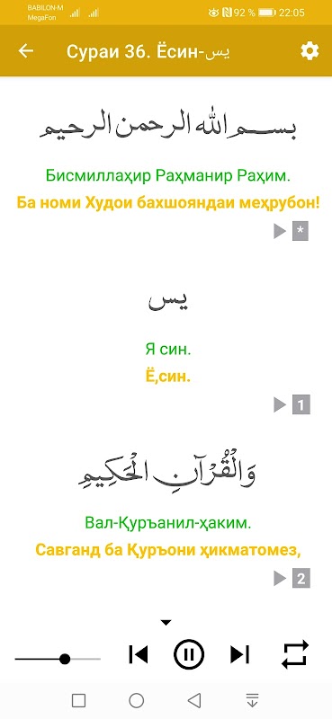 Suragoi Yosinu Taborak az Qur'oni Karim dar shakli arabӣ, cyrilӣ, toҷikӣ va mp3.