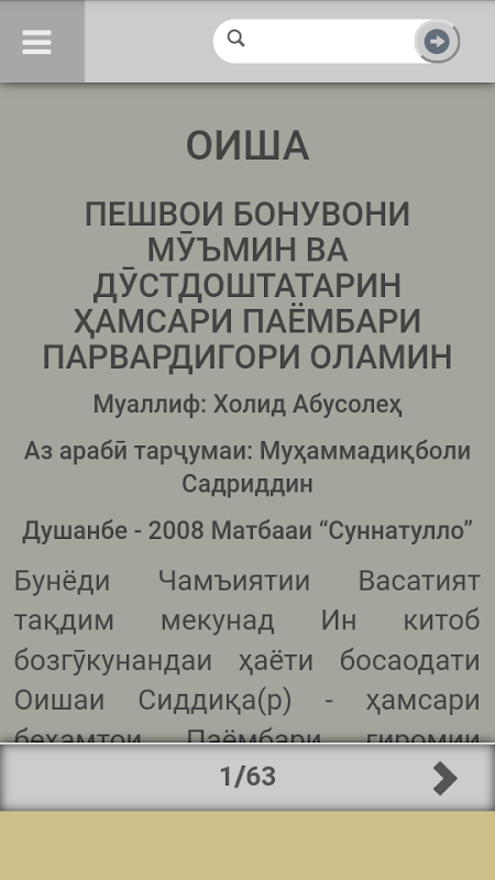 Khazrati Oisha (Aisha) (p) Kitob bo zaboni Tochiki
