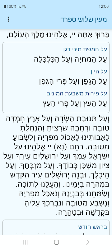 With Birkot Hanehenin Sfard, you can express your gratitude to God for your food anytime, anywhere. The app is easy to use, available in Hebrew, and it includes everything you need to say the blessings after a meal.