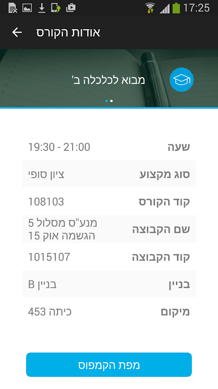 • קבלת מידע על פרטי הקורס הנלמד והסבר הגעה על מפה