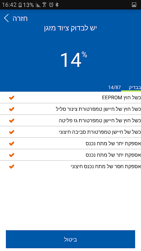 כפתור בדיקה יאפשר לאפליקציה לבצע בדיקת תקינות למזגן ואפליקציית טורנדו WIFI תציג עבורך דוח מפורט על מצב תקינות המזגן