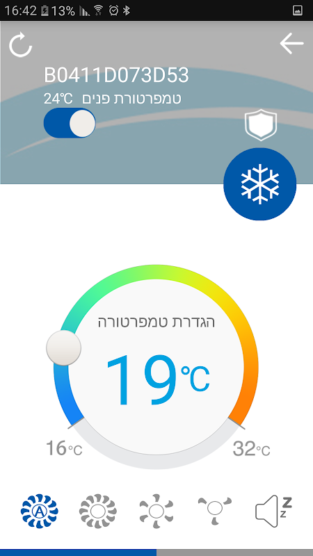 האפליקציה תאפשר לך לכבות להדליק את המזגן, שליטה מלאה בטמפרטורה, שינוי מצבי פעולה: קירור, חימום, יבוש, אוורור, אוטומט.