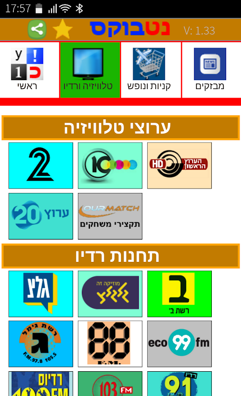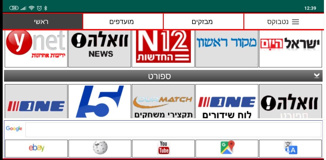 News / and Inti, and voila, Rotter Israel today, Ma'ariv, NRG, The Marker, Mako, Kalkalist, Globes, Nana 10, Army Radio, Reshet Bet radio non-stop sports 5, One, YouTube, Weather, Isaiah , Zap, delivery, temporary trains and buses, hand 2, Groupon, coupons, channel 2, channel 10 Series, eBay, Aliaksfrs, Amazon sites boards, Madeleine and real estate, minute 90, trivago, Booking, Hoels, Expedia, Smartair, UP, easyJet , RYANAIR.