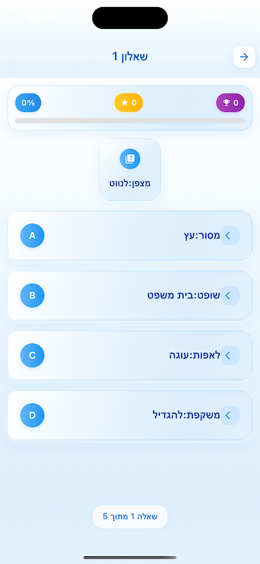 Beyond the comprehensive practice, Psycho-Lexicon offers a fun, convenient and personalized learning experience for psychometric preparation. A combination of gameplay, challenges and visual progress tracking helps you see your improvement and stay focused. All this in an intuitive interface in full Hebrew, which allows you to study and prepare for psychometrics at your own pace, anytime and anywhere.