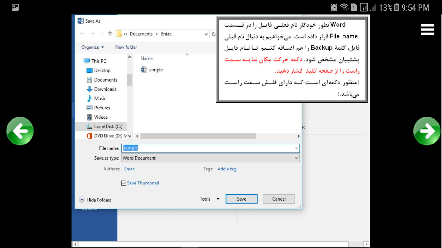 Word 2016 Interactive Tutorial, Voice and Text Persian, Free First Section Free Without Internet