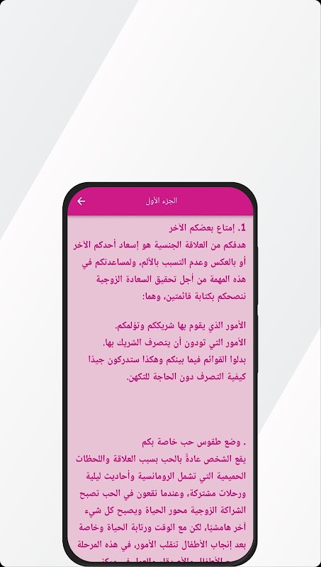 في هذا التطبيق سوف تتعرف على عدة جوانب أساسية في العلاقة الزوجية الحميمة