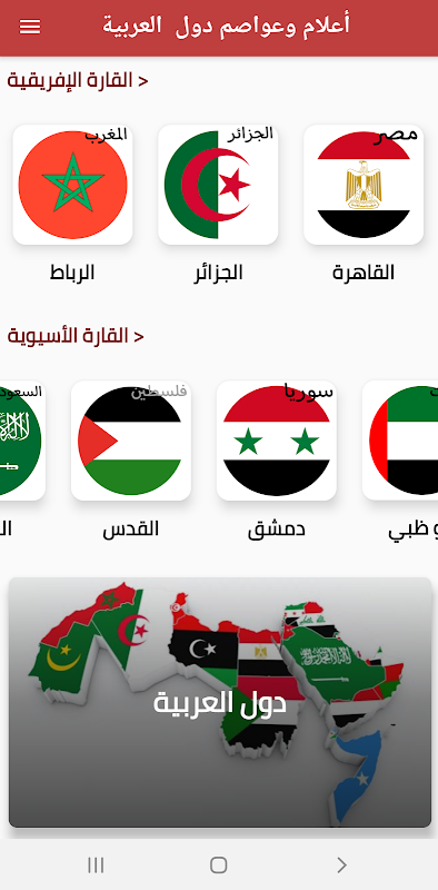 جميع أسماء عواصم دول العربية وفي أي قارة تقع ومعلومات ثقفية عديدة حول دول العربية