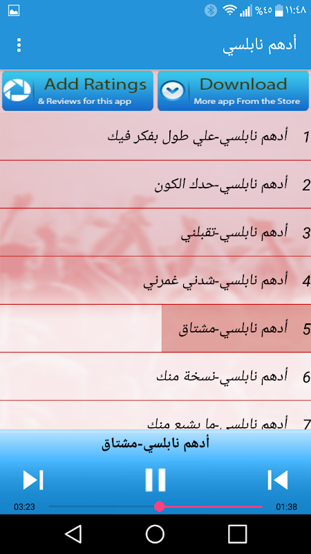 يتوفر هذا التطبيق على جميع اغاني أدهم نابلسي و يخول لكم الاستماع إلى أفضل أغاني الفنان العملاق أدهم نابلسي بدون انترنت