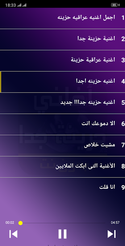 The application contains the most beautiful 31 very sad Arabic songs arani hazina 2025 in addition to songs
