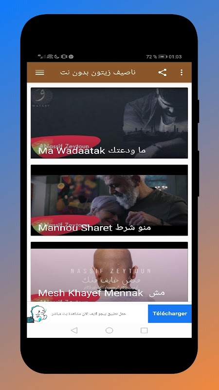 إذن ماذا تنتظر قم بتحميل تطبيق أغاني سعد لمجرد بدون أنترنيت 2020 و إستمتع لأغاني ناصيف زيتون الحصرية بدون نت .