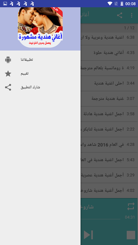 The application contains the best variety Indian songs complete without Net to suit all tastes.