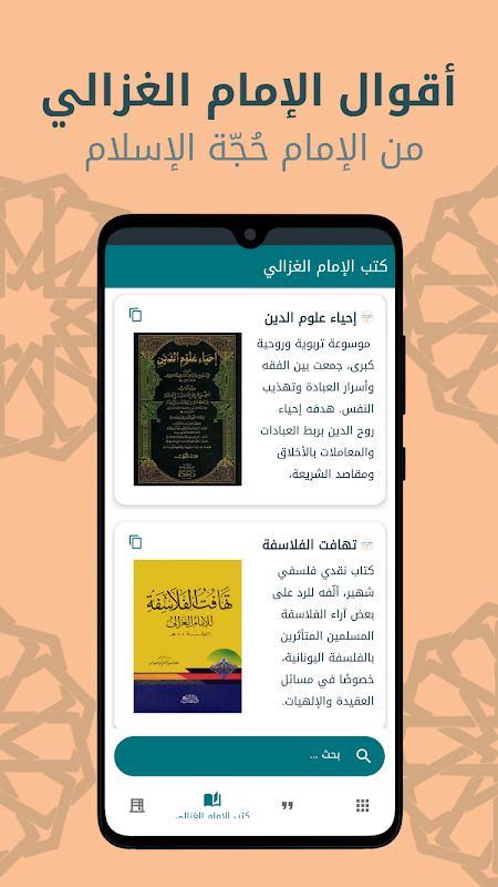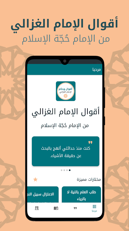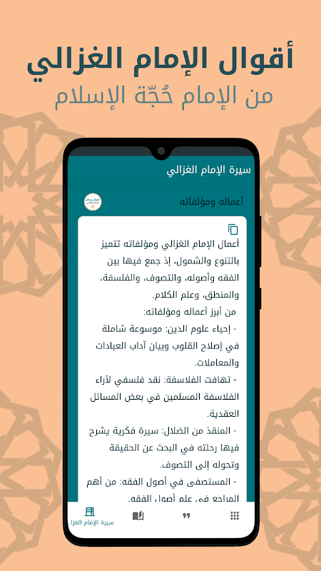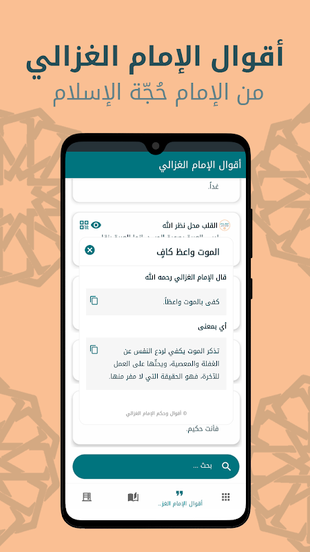 This application is a reference to the most famous sayings and wisdom left by Imam Al-Ghazali.