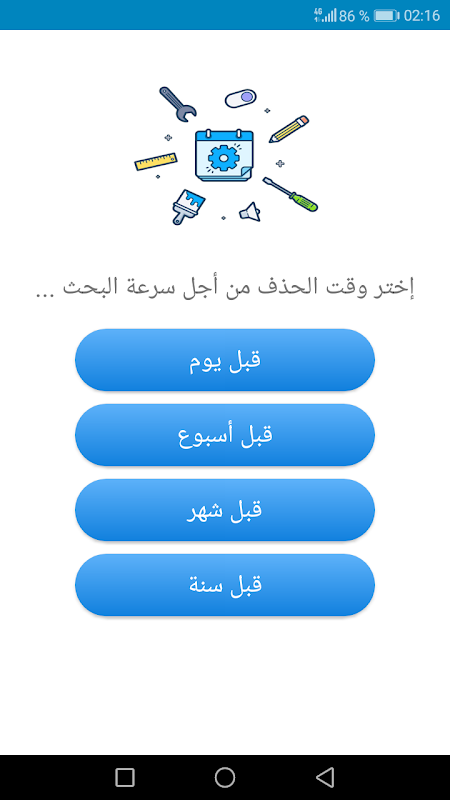 تطبيقنا هو لاسترجاع الصور المحذوفة والضائعة من الهاتف أو صور الوتس أب كل ما يجب فعله هو اختيار زمن الحدف ومكان الحذف