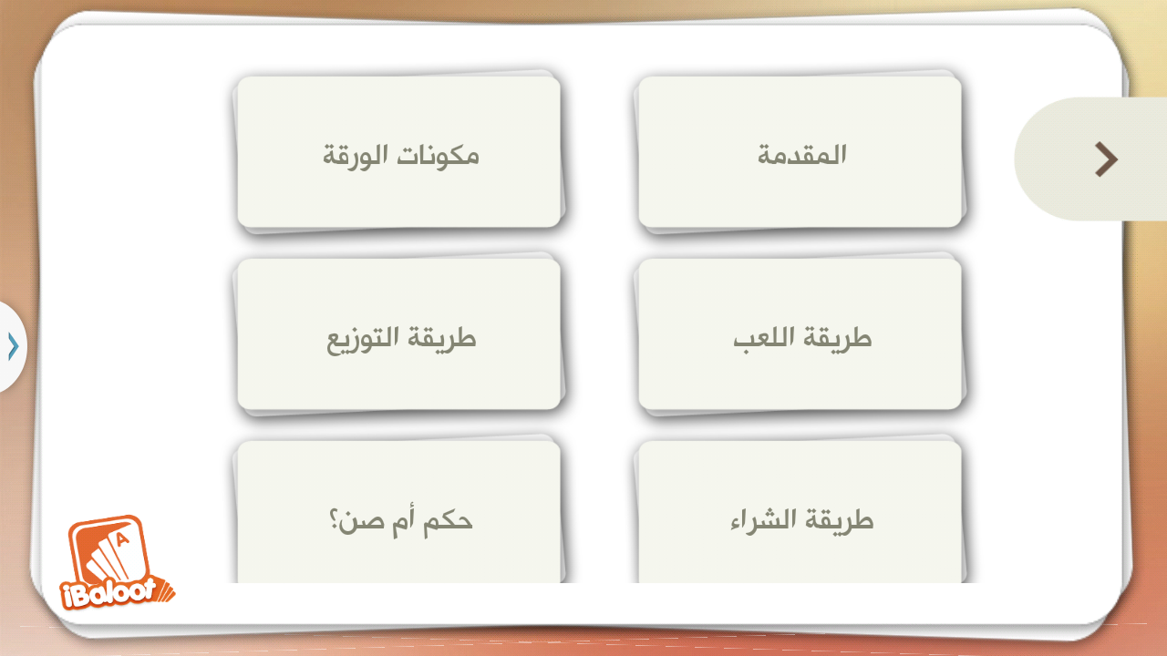 Explain most of the game rules, and will master iBaloot in a very short time.