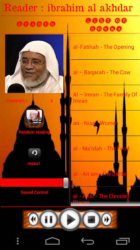 A special application for the Noble Qur’an, with the voice of the reciter Sheikh Ibrahim Al-Akhdar, from Tarawih prayers