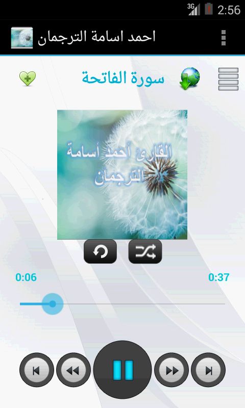 محتوى التطبيق: سورة الصافات بصوت القارئ احمد اسامة الترجمان