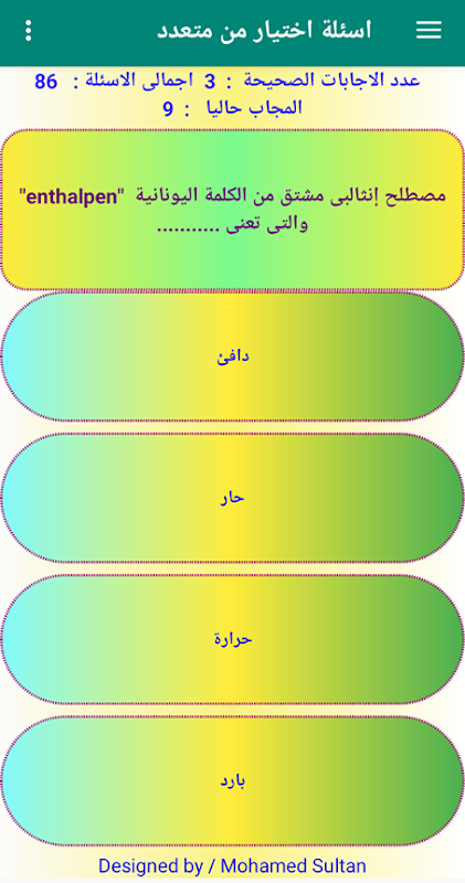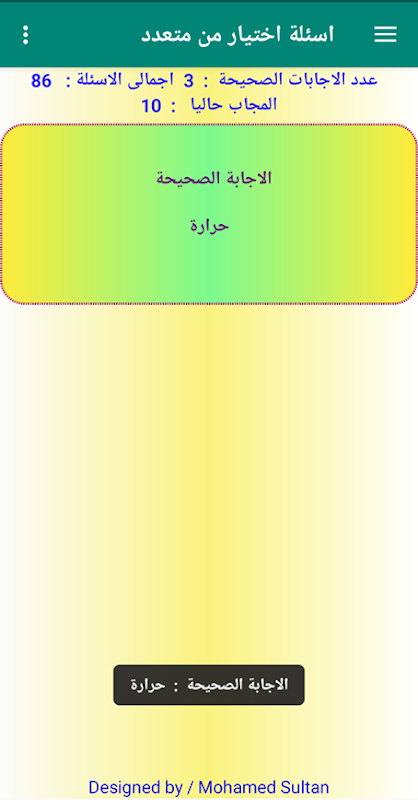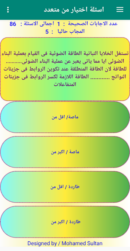 This application is for students of the first year of secondary school to train them on the tablet system and the modern system in the subject of chemistry, the second aims intelligent questions and questions that depend on the understanding of students and show the result at once. This program is designed to serve high school students the modern system