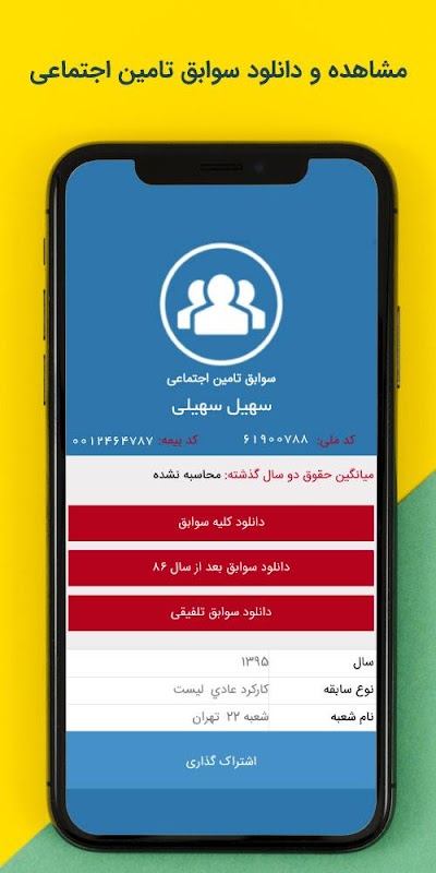 امکانات اپلیکیشن سوابق تامین اجتماعی: