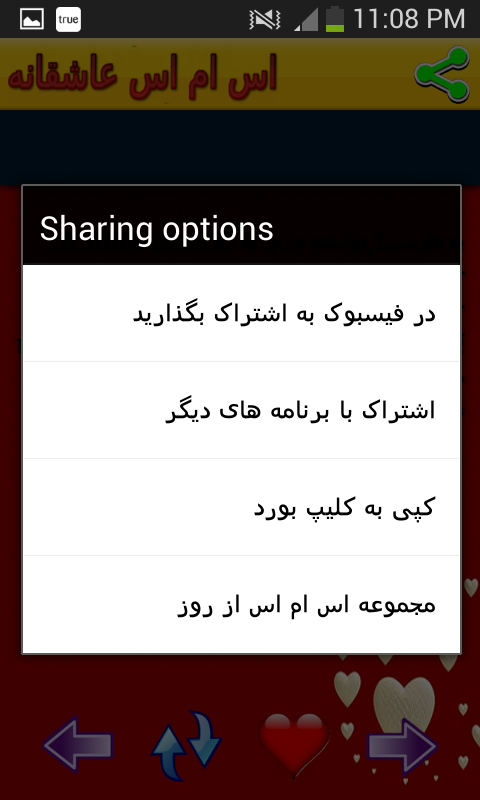 مجموعه ای از ۲۰۰ پیامک عاشقانه زیبا و جدید با قابلیت رونوشت ، اشتراک گذاری و ارسال پیامک و برخورداری از رابط کاربری ساده و زیبا