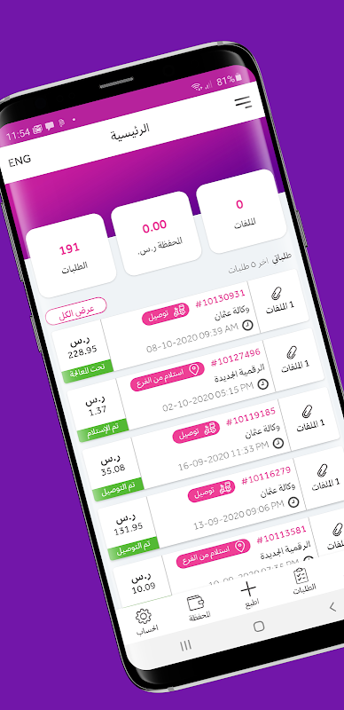 عن طريق استخدام التطبيق يمكنك رفع الملف بصيغة PDF واتمام خيارات الطباعة مثل حجم ونوع الورق كذلك يمكنك اختيار التغليف المناسب. ثم بعد اختيار المدينة يمكنك اختيار طريقة توصيل الملف اما عن طريق استلام الطلب من الفرع او اختيار التوصيل للمنزل.
