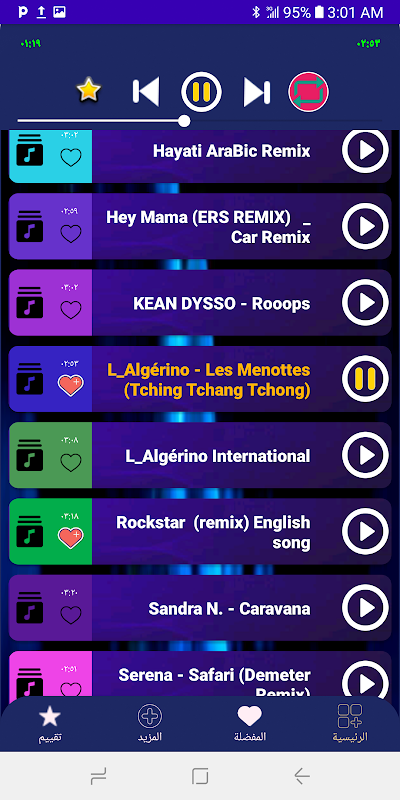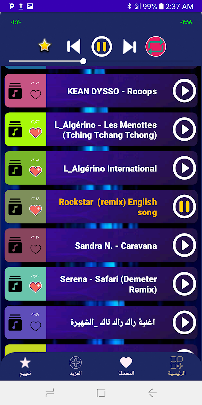 - سهل الاستخدام وسريع التنقل بين الاغاني .