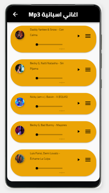The songs have many and varied categories, and the songs are something of a merger with what is going on in our feelings and immersion in the song, as if we were living the same situation. Favorite on it, and you can hear your favorite song only by pressing the play button, and then you will listen to what you like to hear in the Spanish songs application. What the Spanish songs application offers us, which was designed in an easy and comfortable way to use so that you can hear what you are singing about. Download now the Spanish songs 2023 application and enjoy the most beautiful songs