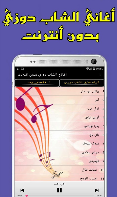 يتوفر هذا التطبيق على جميع اغاني الشاب دوزي و يخول لكم الاستماع إلى أفضل أغاني الفنان العملاق الشاب دوزي بدون انترنت
