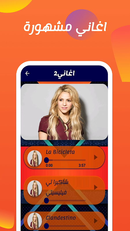 To all fans of Shakira's songs, we have provided you with your favorite and most requested and searched songs in an application that makes you dispense with searching for them on other sites, including Shakira's songs of high quality and accuracy, and not only that, it also contains all Shakira's songs and Shakira's most famous songs, such as the song Shakira monotonia, Shakira's song la la la, Shakira's song Girl Like Me, Shakira's song "hips don't lie" and Shakira's song "te felicito", listen now to Shakira's most beautiful songs