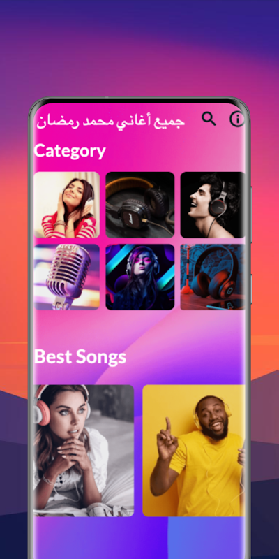 The application features a wonderful background and fast browsing, where you can listen to all the new songs of Mohamed Ramadan with the lyrics