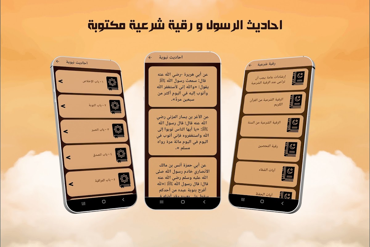 * Ruqyah Sharia: The application contains Ruqyah Sharia for protection and healing from diseases, magic, the evil eye, and evil.