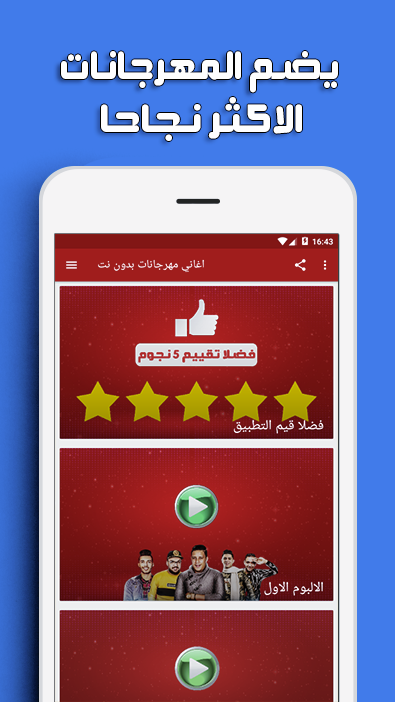The application of songs without the net also includes many features and surprises, in addition to the feature of alerts about new popular songs and the most popular Egyptian songs in the art scene currently.