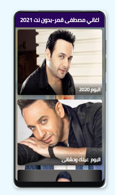 ويحتوي التطبيق على العديد من الاغاني والالبومات الرائعة للفنان مصطفى قمر ومنها : البوم 2020 - البوم عينك وحشاني - البوم مولاي سبحانك وكل البوم يحتوي على الاقل 7 اغاني