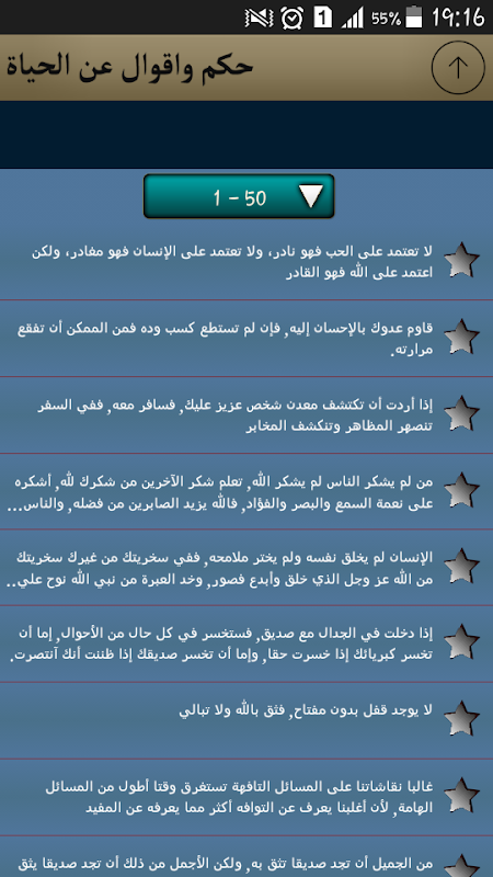 -إمكانية مشاركة الأقوال والأمثال مع أصدقائك عبر الفاسبوك.
