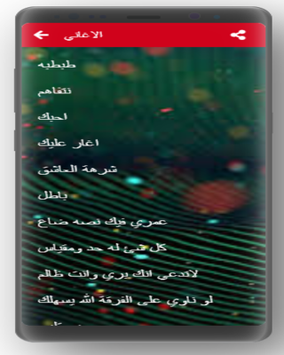 يحتوي هذا التطبيق على اقوى الاغاني منها: