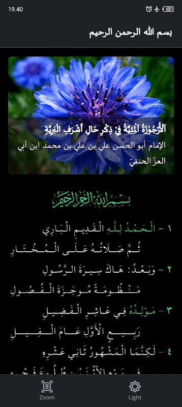 The application of Al-Arjouza Al-Ma’iyya in mentioning the condition of Ashraf Al-Bariyyah by Imam Abu Al-Hasan Ali bin Ali bin Muhammad Ibn Abi Al-Izz Al-Hanafi provides a distinctive poetic text that deals with the biography of the Prophet Muhammad, may God bless him and grant him peace, in a concise and simplified manner. This Arjuza is one of the valuable works that focuses on the life and biography of the most honorable creation, making it an important reference for researchers and those interested in the biography of the Prophet. The application is equipped with many useful features to improve the reading experience, such as the zoom in and out feature, which allows the user to adjust the text size according to his desire, and the dark and light mode feature, which allows changing the lighting mode between the two modes to suit different reading times, which provides greater comfort for the eyes. The application is ideal for anyone who wants to study the Prophet’s biography in an easy and organized way.
