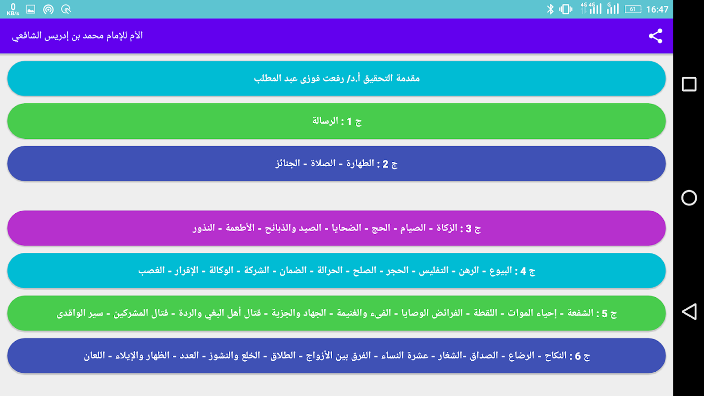 This application contains the mother book of Imam Muhammad ibn Idris al-Shafi’i