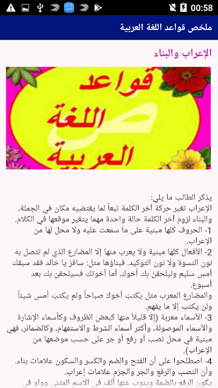 يمكنك التطبيق من تعلم الإعراب بطريقة سهلة وميسرة وكذلك يوفر التطبيق دروس في النحو من أجل تسهيل عملية التعلم
