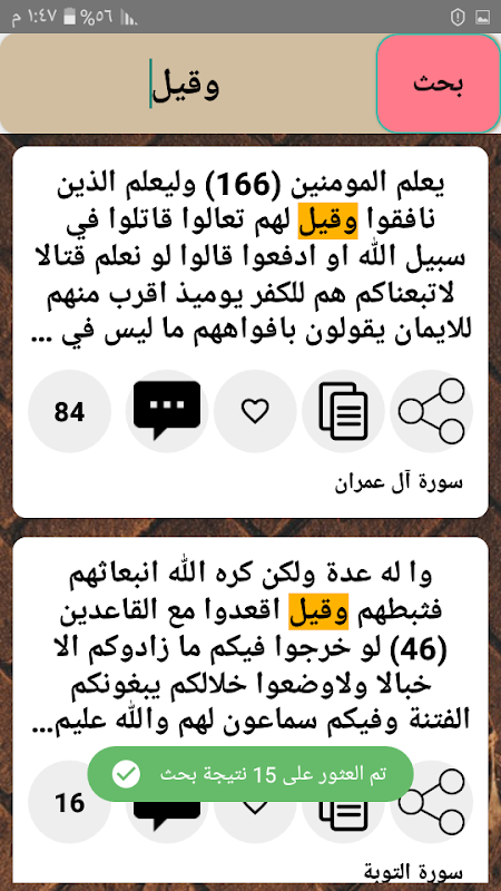 مشاركة The possibility of sharing a section cut off by long press on the text.