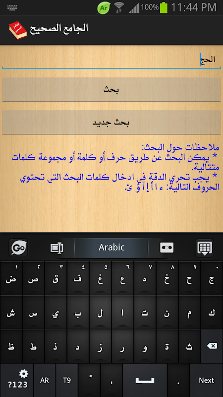 يمكن الحصول على محتوى البرنامج من خلال قائمة البرنامج حيث يمكن مشاركة المحتوى (كل باب على حدة) عن طريق ارسال النص لبرنامج آخر مثبت في الجهاز أو ارساله بواسطة البريد الالكتروني.
