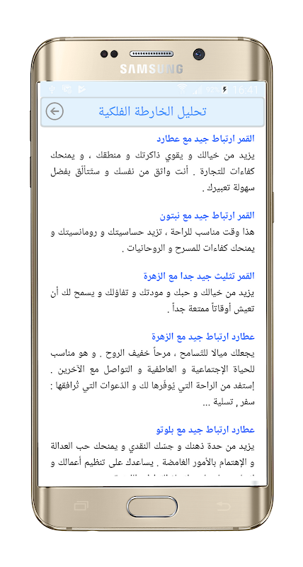 The first and only application that provides you with the ability to obtain a personal astronomical map or what is known as the astronomical chart (chart wheel) with details and explanation of the positions and positions of the planets at the time of birth and obtain a detailed report in the Arabic language, which is more accurate than the expectations and notice of the astronomical signs as the characteristics of the sign are general It is not absolutely applicable to the owner of the sign, but the interpretation and analysis of the astronomical map is more accurate and applies to us greatly, on the condition that the information entered is accurate and correct, especially the time of birth.