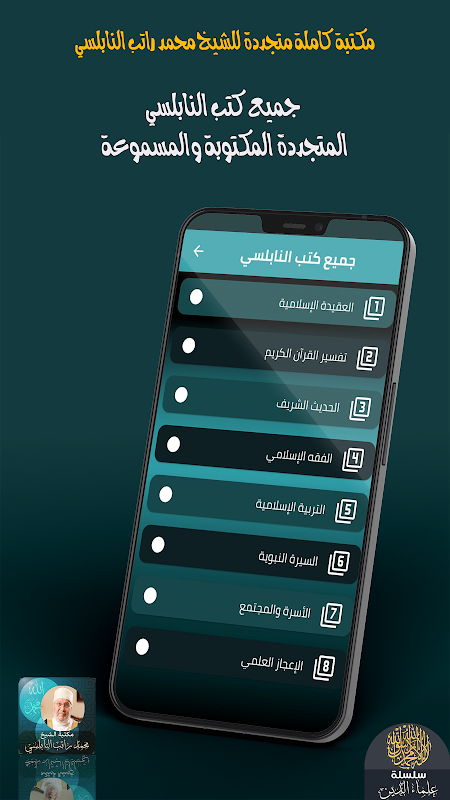 The Dr. Muhammad Ratib Al-Nabulsi application will always be with you at any time you want to listen and learn about your Islamic religion, whether in your spare time at work or in transportation, where you put headphones in your ear and listen to the sermons and lessons of Dr. Muhammad Ratib Al-Nabulsi or other scholars and distinguished and beloved sheikhs Within this series, you have an understanding of wealth and stature, and you can learn a lot from them in the big or even small daily matters of your religion