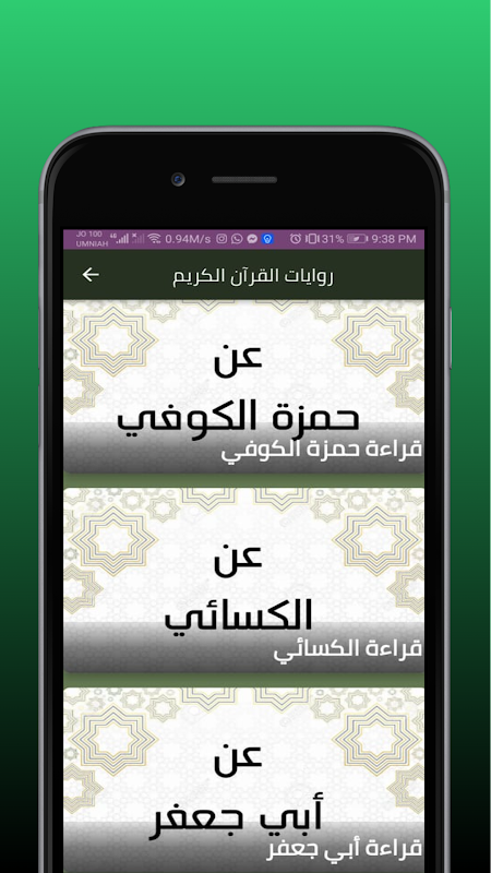 The application of the ten narrations of the complete Qur’an is an application that displays the entire ten narrations of the Holy Qur’an that differ in terms and some other matters. Complete Ten Recitations of the Qur'an according to the name of the Imam